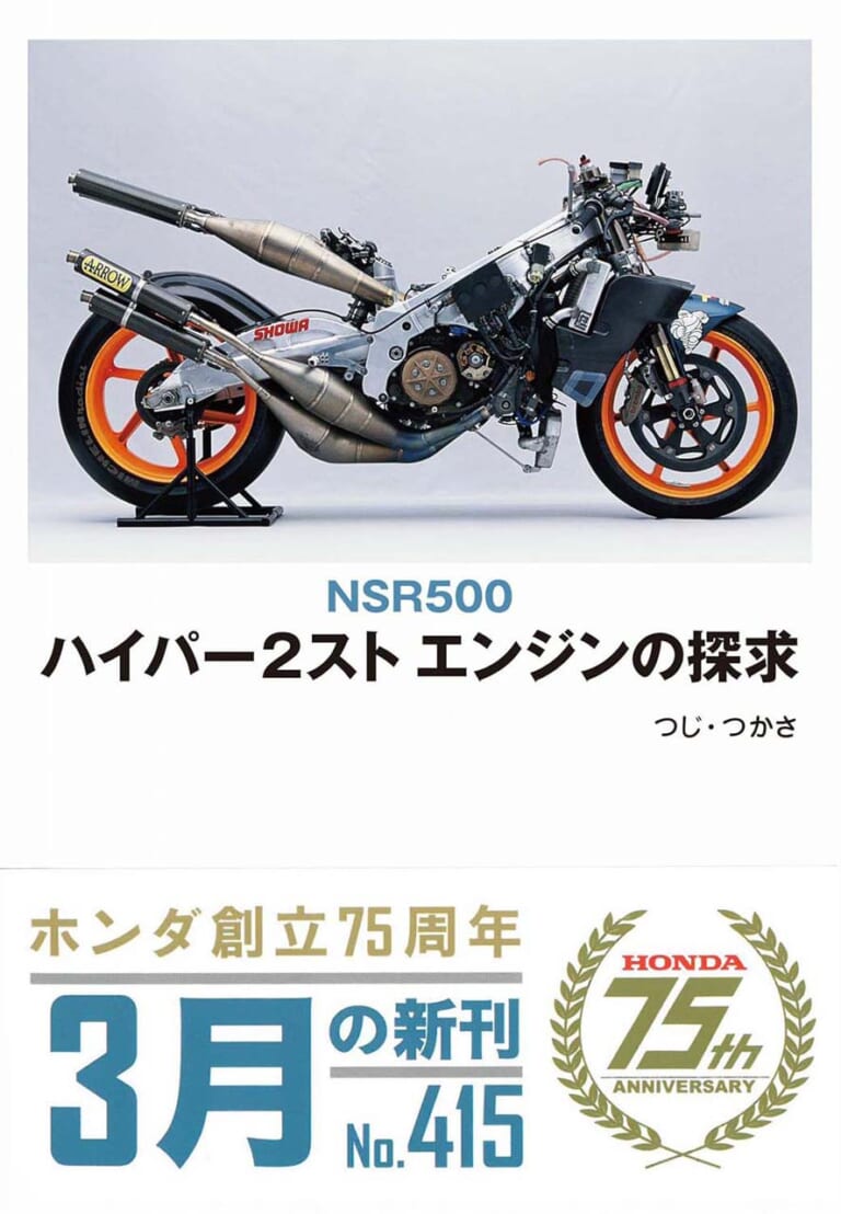1980~90年代に活躍した栄光のGPマシン「NSR500」を題材に、理論派で知られるつじ・つかさ氏が開発エンジニア諸氏へ徹底取材。2度とこんな本は世に出ないのでは、というレベルで分厚い1冊にまとめられた書籍が「NSR500 ハイパー2スト エンジンの探求」だ。