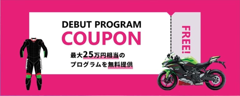 「レディースクラス」新設を記念して、女性ライダーをサポートする“今年だけの特典”を用意。レースに使用する「Ninja ZX-25R」やサーキット走行時に着用するレーシングスーツの無料レンタル、「Ninja ZX-25R」を体験試乗できるカワサキプラザレンタルのクーポンを抽選でプレゼントするほか、お申し込みいただいた方全員を「Ninja Team Green Trial」「Ninja Team Green Cup」に無料でご招待します。