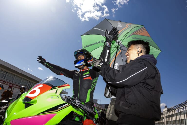 この「Ninja Team Green Cup」は、4気筒250ccスーパースポーツ「Ninja ZX-25R」を所有していれば手軽にエントリーでき、ノーマル装備のままでも競い合えることやオーナー同士の交流が広がることなどから人気となっているワンメイクレース。2024年の第1戦は4月28日にオートポリスで行われる。