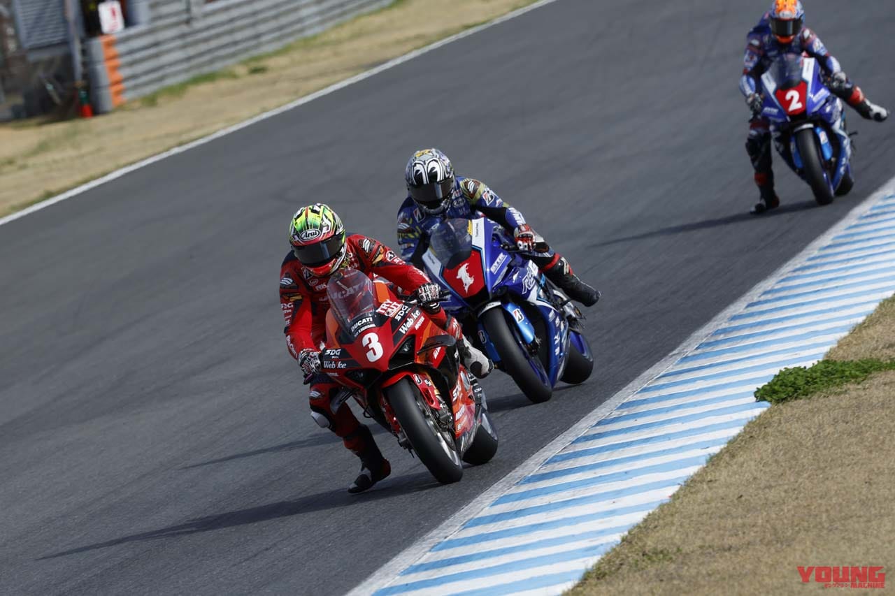 予選では中須賀克行が1分46秒447でポールポジションを獲得、ドゥカティチームカガヤマに移籍して注目される水野涼は1分46秒692で2位、そして昨年のポールシッターである岡本裕生が1分47秒170でフロントロウに並ぶ。4位となった野佐根航汰の「1分47秒287までが昨年のポールタイムを上回るというハイレベルな争いだ。