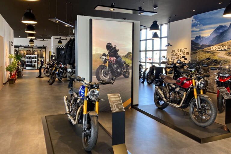 このトライアンフの好調を牽引しているのは、2024年春に発売した中型モデル、スピード400とスクランブラー400X、そして3気筒フルカウルスポーツのデイトナ660だろう。いずれも輸入車としてはかなりリーズナブルな価格設定で、廉価であってもトライアンフのフィロソフィーがきちんと貫かれている。