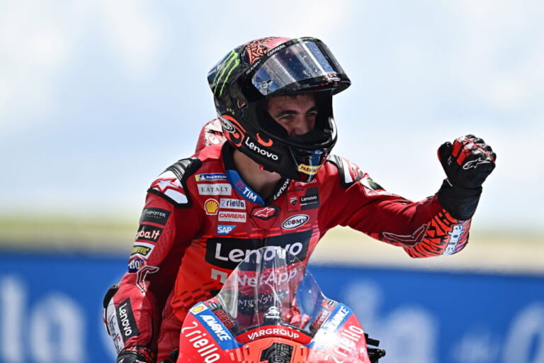 本当に印象的なレースだった。何しろ、“あの”マルケスとの接近戦に競り勝っての勝利だ。「真の王者はオレだ!」と言わんばかりに、バニャイアは高々と拳を突き上げた。