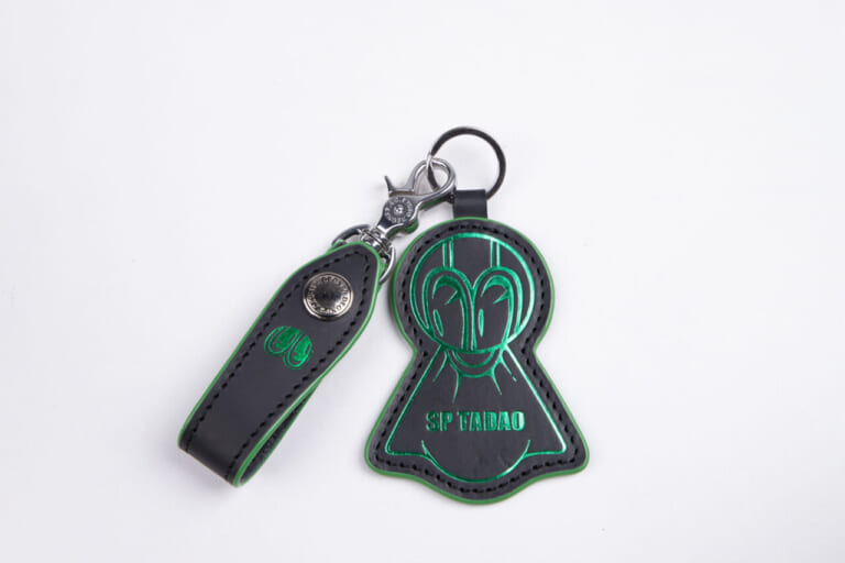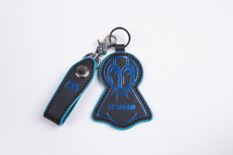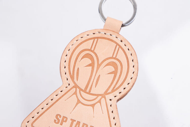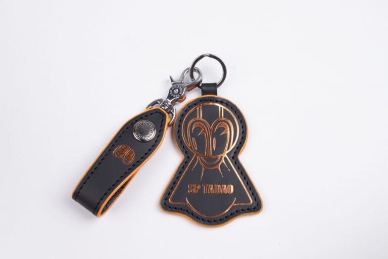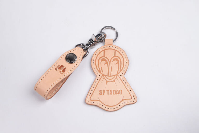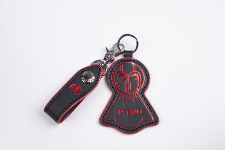 【SP忠男キーホルダー】●品番:SPK-1 ●価格:4950円 ●サイズ:縦23×横6.5cm ●チャーム全長:縦12×幅6.5cm ●キーホルダー全長:縦12×横3×幅2.5cm ●色:タン、黒×赤、黒×橙、黒×緑、黒×青 ●素材:牛革(天然タンニンなめし)