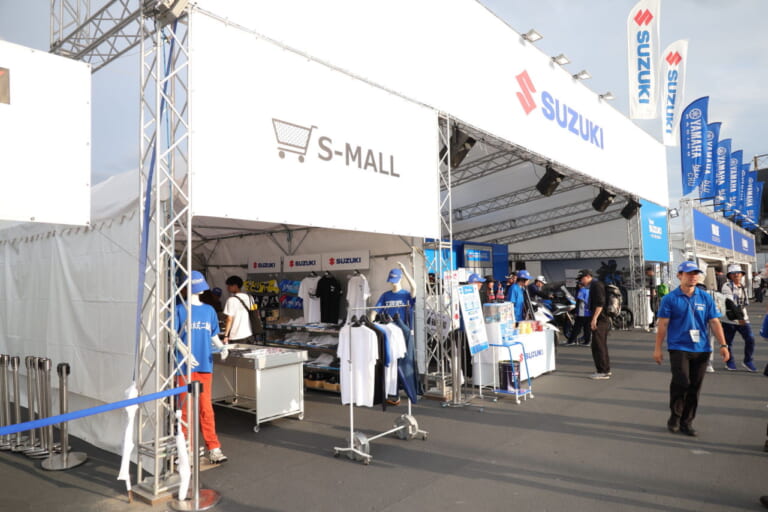 もちろんチームスズキCNチャレンジのマシンが鎮座。ハヤブサほか跨り車もあった。