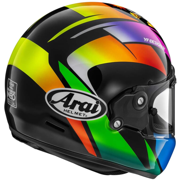 アライヘルメットは、3本スリットを特徴とするフルフェイスヘルメット『RAPIDE-NEO(ラパイド・ネオ)』に、元WGPチャンピオン・坂田和人のレプリカモデル『RAPIDE-NEO SAKATA(ラパイド・ネオ・サカタ)』を発表した。発売予定は2024年9月上旬だ。