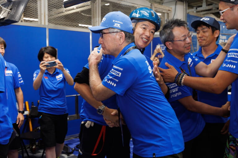 鈴鹿を8時間走り切ったゴール後には各チームそれぞれの感動が交錯するが、チームスズキCNチャレンジのピットでも他に負けない歓喜と涙模様が繰り広げられた。