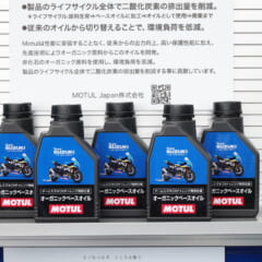 【オイル】Motulが提供した、非化石のオーガニック原料をベースオイルに使用しすることで、CO2排出量を削減するエンジンオイル。CNチャレンジのために用意されたもので、べンチテストを繰り返して性能を確認して使用。灼熱の8時間耐久レースを、ノントラブルで走り切った。