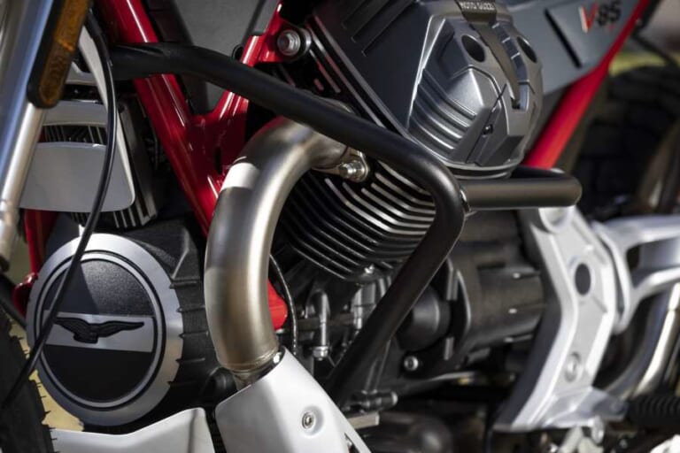 2019年に初登場したモトグッツィ「V85TT」は、最新V7系853ccの縦置きV型2気筒エンジンを搭載したアドベンチャーツアラー。ロングツーリング仕様の「V85TTトラベル」の登場は翌2020年で、オプションだったロングタイプのスクリーンや左右パニアケース、グリップヒーター、フォグランプなどを標準装備していた。