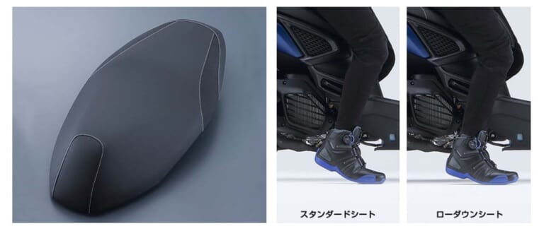左は単体販売(2万1450円)もされるローダウンシート。右の2つは約30mmの違いによる足着きの差だ。