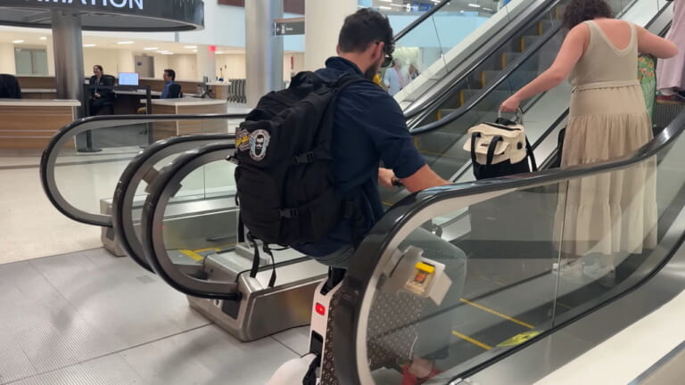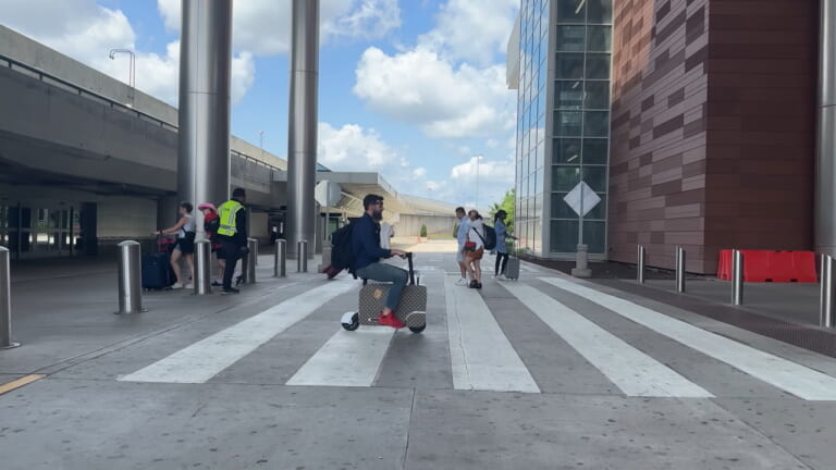 調子に乗って地下鉄やショッピングセンター、さらには空港にまで自走で入って行って、手荷物で預けようとしてひと悶着。……意外にもそのまま預けることに成功しちゃいます。