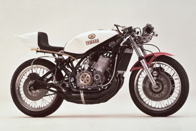 OW20は兄弟車のTZ750と同時開発。フレームはフェザーベッドタイプで、エンジンは2スト並列4気筒。