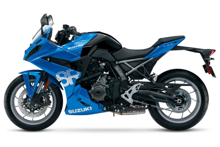 スチール製フレームやアルミ製スイングアーム、270度クランク&クロスバランサー装備の並列2気筒エンジンは基本的に8Sと同スペックのものを搭載。スリップ&アシスト機能を持つスズキクラッチアシストシステム(SCAS)や発進時に回転を少しだけ上げてサポートしてくれるローRPMアシストに加え、双方向クイックシフトシステム、3段階+OFFのスズキトラクションコントロールシステム(STCS)、3段階に設定可能なスズキドライブモードセレクター(SDMS)といった先進装備も備えている。