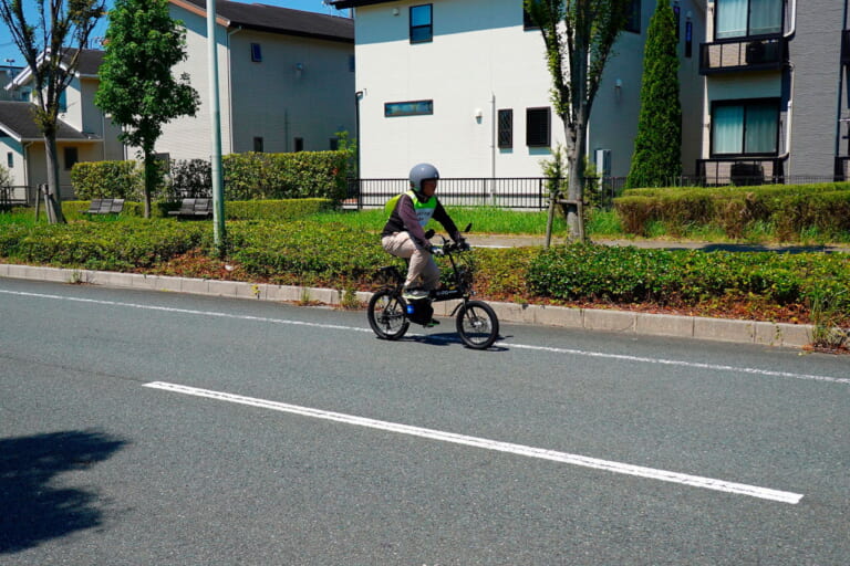 都内は季節外れの猛暑日だったが全力で漕いでみたところ、メーター読みで46km/hまでいけた(※クローズドコースです)。ここまでくると乗り手の脚力次第になるが、合流や右左折でやむを得ず危険を避けなければならないような場面では、+αのスピードを得ることができるということになる。