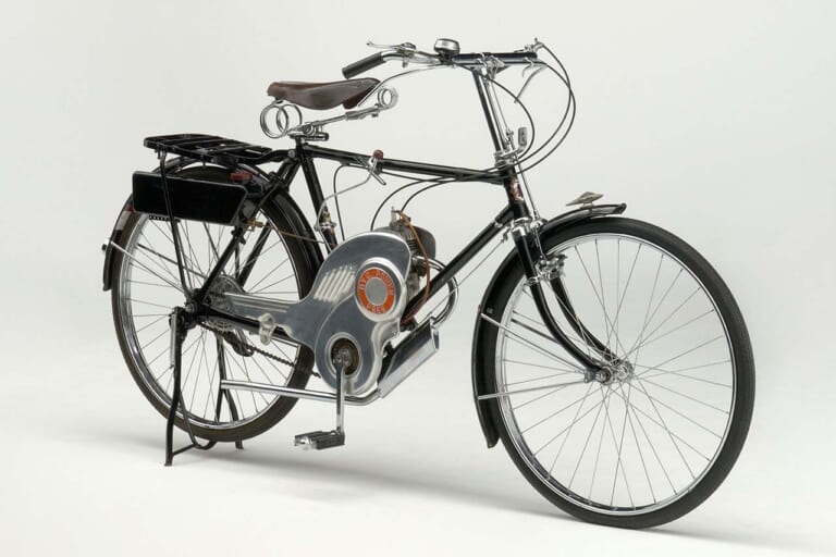 【パワーフリー】スズキの二輪車メーカーとしての原点となった自転車用補助エンジンは空冷2サイクル単気筒36ccで、最高出力は1.0ps/4000rpm。湿式多板クラッチの2弾トランスミッションを搭載した。当時価格は3万6000円。登坂試験で箱根峠に挑んだところ無事故で難なく走行し、性能の優秀さを実証したというエピソードがある。1954年の「E3型」まで進化したほか、1953年に60cc・2.0ps/4000rpmのダイヤモンドフリー(3万8000円)も登場している。