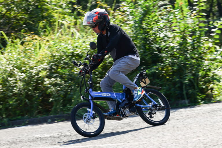 そんななか、プロトタイプの試乗会が開催されたスズキ・e-POは、パナソニック製の折り畳みタイプの電動アシスト自転車をベースに「フル電動走行モード」、「アシスト走行モード」、「ペダル走行モード」の3つの走行モードを可能にしたモデルで、道路交通法上では原付一種に相当します。
