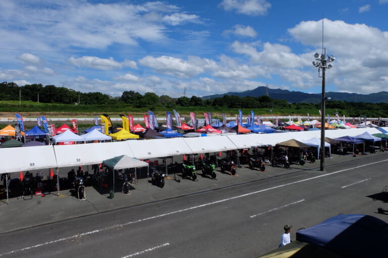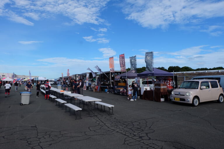 ピットには協賛メーカーのテントや、食事を提供するキッチンカーなどが並び、開催サーキットであるHSR九州の最大級のイベントに成長しています。