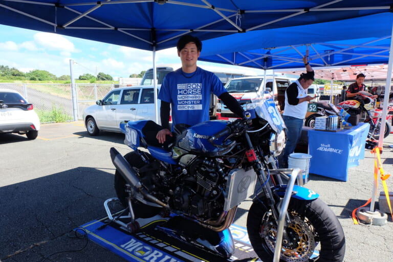 クラス分けにあるように、基本は70~80年代に生産された旧車がメインなのですが、異彩を放っていたのがカワサキ・Z900RS。これは、今回もアイアンスポーツエキスパートクラスに参戦して、森脇尚護選手のライディングで見事に優勝を飾ったモリワキの影響が多いのだと言います。