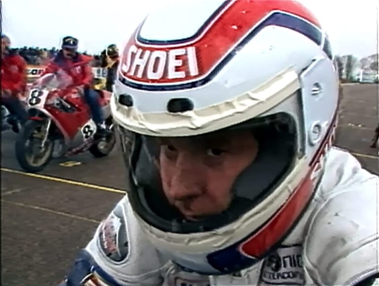 1986トランスアトランティックの開催地は、当時改装でコースが延長されたばかりの英国ドニントンパーク・サーキット。イギリスチームを率いるのはヤマハを駆るGPライダーのロブ・マッケルニアで、マシンはこの年デイトナ200マイルでエディ・ローソンが優勝したFZ750だ。 アメリカチームはUSスーパーバイクチャンピオンのフレッド・マーケルが率いる。