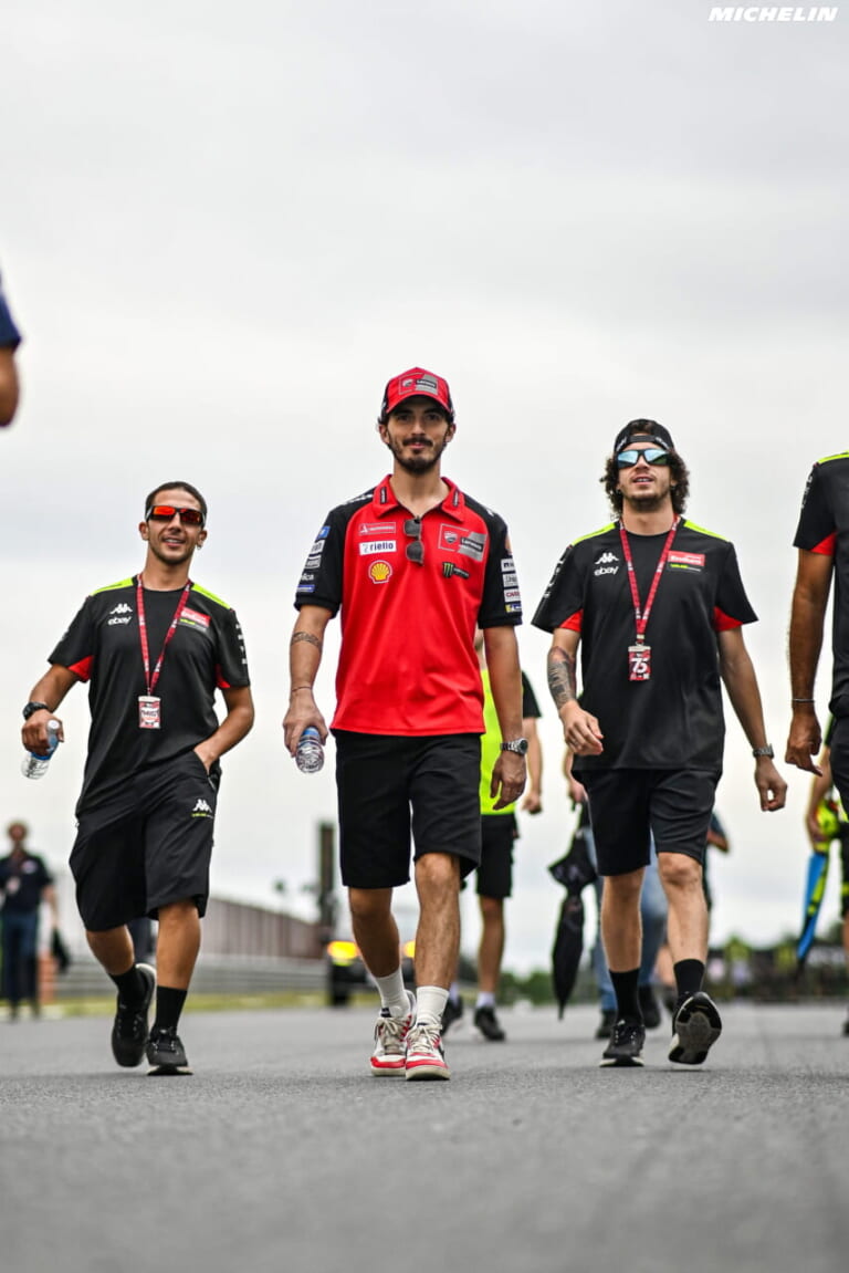 ホルヘ・マルティンはバッチバチにマシンを寝かせる派。1~2コーナー、3~4コーナーなどでのヒジ擦り、もしかすると肩擦りが見られるかもしれない。エネア・バスティアニーニはバッチバチに体をイン側に落とす派。どこもかしこも体を落としまくるので、どのコーナーでも目立つはずだ。