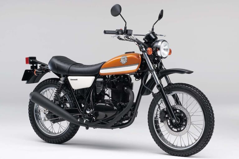 インドネシアなどで販売されるW175シリーズのスクランブラーバージョン。最低地上高はシリーズ他車に比べて30mm高く、車重やエンジンスペックなども異なるレトロスタイルのトレールモデル。スキッドプレートやセミアップマフラー、アップフェンダー、燃料タンクなども専用部品だ。