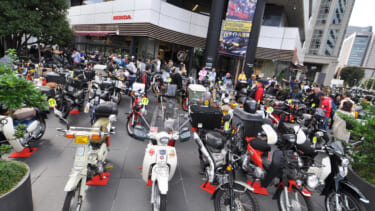 1997年から、東京青山のホンダウェルカム プラザ青山で年に一回開催されている、スーパーカブのオーナーミーティング「カフェカブミーティング」をレポート。第26回目には、200台以上のスーパーカブが集結し、新旧に加えて仕様もさまざまな“株主”自慢の愛機がところ狭しと並べられた。