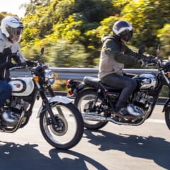 KLX230S/シェルパと同日に、ブランニューモデルの「W230」と「MEGURO S1」にも試乗することができたのでインプレッションをお伝えしたい。KLX230と同系エンジンを搭載しながら、軽二輪レトロの2車は全く別物の乗り味を実現していた。 目次 1 復活の軽二輪レトロは足着き性抜群、エンジンは大部分が専用設計だ2 トコトコ走りとパンチのある高回転を見事に両立3 “1800rpm”の優しさ4 […]