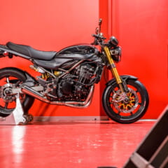 マニア好みのボルドールカラーが映える! アクティブが手掛けるCB1000Fカスタムだが、まずはカラーリングがインパクト大! CB-Fといえば、純正カラーでも用意されるシルバーにブルーのグラフィックの、[…]