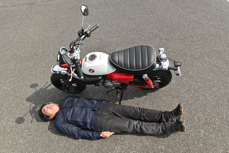 またモンキー125で面白いのは、乗ると“ついつい余計なことをしたくなる”ところ。おそらくモンキー125の軽量コンパクトさがそうさせるのだろうが、走っているうちに、リヤをブレーキロックしたらうまくブレーキターンできるんじゃないの? とか、コイツとならもしかしてフロントアップできるんじゃないの? なんて気分になってくる。