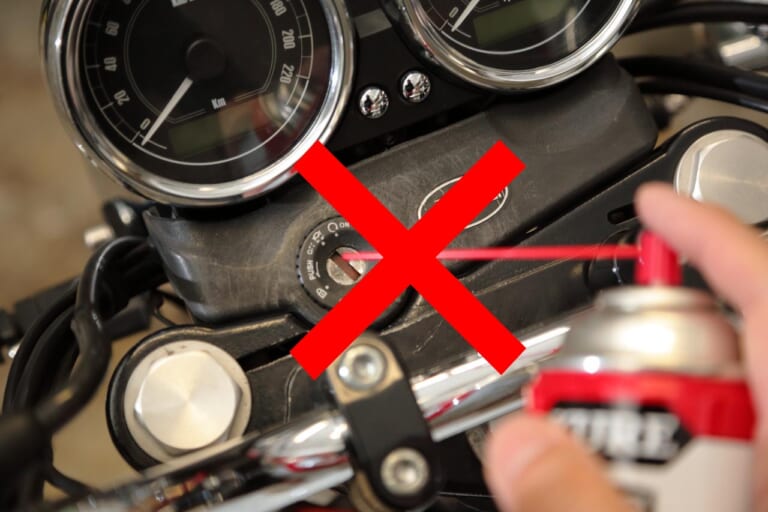 正直に言いましょう。筆者もバイクに乗り始めた頃、5000円で譲り受けたTL50というホンダの古いバイクで、鍵穴=キーシリンダーにクレ5-56を差したことがありました。