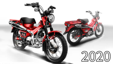 ホンダが昨年達成した生産累計4億台のうち、1億台以上はスーパーカブ系。そのシリーズ中で究極のアウトドアマシンとして支持されていた“ハンターカブ”が復活を遂げたのは、2020年のこと。エンジンはスーパーカブC125をベースとし、前後ディスクブレーキなどを装備。価格は44万円だった。