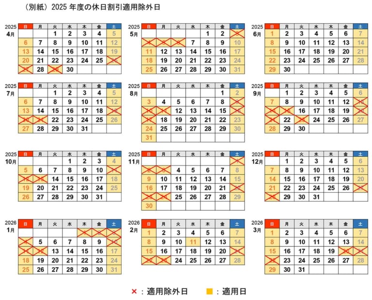 ご覧のように、’25年度の3連休すべてが割引除外日となった。