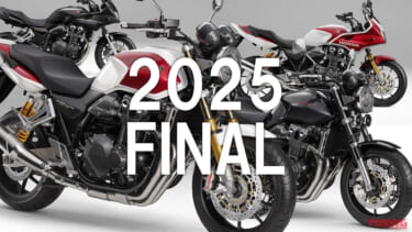 【CB1300 SUPER FOUR Final Edition / SP Final Edition】主要諸元■全長2200 全幅795 全高1125[1135) 軸距1520 最低地上高140 シート高780[790](各mm) 車重266kg(装備)■水冷4ストローク並列4気筒DOHC4バルブ 1284cc 113ps/7750rpm 11.4kg-m/6250rpm 変速機6段 燃料タンク容量21L■タイヤサイズF=120/70ZR17 R=180/55ZR17 ●価格:172万7000[210万1000]円 ●色:白×赤、青×白 ●発売日:2025年2月28日 ※[ ]内はSP