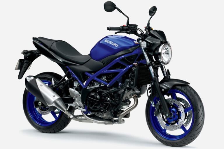 今回紹介するカテゴリーでは唯一のV型2気筒エンジンを搭載するのが最大の特徴。扱いやすさとVツインらしい弾け感を持つこのエンジンは、1999年の初代SV650(および1998年のSV400)から連綿と受け継がれてきた名作で、時代時代に合わせた排出ガス規制等に適合しながら生き残ってきている。現行のSV650シリーズは、ローハンドル+ビキニカウルのSV650X(下記に紹介)と、ネイキッドSV650の2本立て。かつてはアルミフレームに現代的なデザインだったが、2016年より現在のスチール製トレリスフレームのオーソドックスなスタイルになった。発進時にエンジン回転数をわずかに上げてエンストしにくくする「ローRPM」アシストや、スタータースイッチを押し続ける必要なくエンジン始動が可能な「スズキイージースタートシステム」などを装備する。