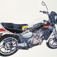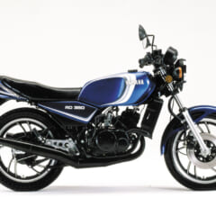 【1981 YAMAHA RZ350】■水冷2スト並列2気筒 ピストンリードバルブ 347cc 45ps/8500rpm 3.8kg-m/8000rpm ■143kg ■タイヤサイズF=3.00-18 R=3.50-18 ●発売当時価格:38万9000円