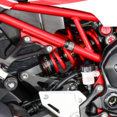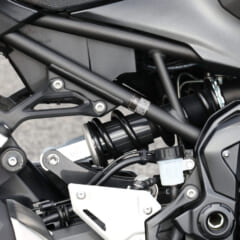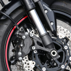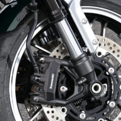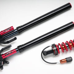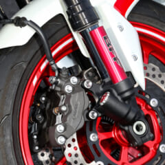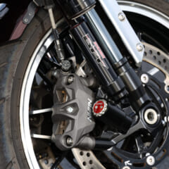 【Astemo SHOWA ハイパフォーマンスシリーズキット for Z900】SHOWA自慢の“バランスフリー機構”が採用された前後サスペンション。カワサキZX-10RやスズキGSX-R1000Rなどが純正採用する機構で、その高性能を他機種でも体感してもらうことを狙ったキットだ。写真のZ900用は3月に発表された新製品で、価格はフロントが25万3000円、リヤが19万8000円。他ブランドの同等品と比べると価格もリーズナブルだ(Z900RS用はリヤは同価格だが、フロントは削り出しエンドピースの採用などで33万円)。SHOWAのテストライダーがメーカーの車両開発と同等レベルのテストを繰り返してセッティングを煮詰めており、装着するだけで確実に性能が向上するのも魅力。