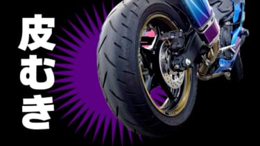 タイヤ交換時に必要とされる「タイヤの皮むき」。滑らないように少しづつバンク角を深くしていく・・・といっても、その時に滑ったら怖い上に、ゆっくり走ってタイヤの端まで使うなんて芸当難しすぎまるというもの。そこでこの記事では「走らないでタイヤの皮むきできちゃうテクニック」を紹介した。