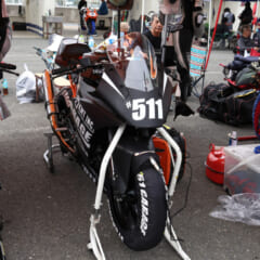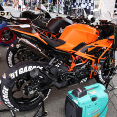 最初に岩城さんがレース復帰を志した際、練習機として活躍したのが旧型RC390。「壊れないし、よく走る」と岩城さんもベタ褒めする1台。メンテナンスはKTM川崎中央で、レースにも帯同してもらってます。