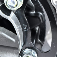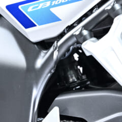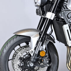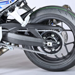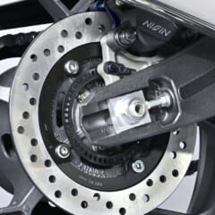 GDC(重力鋳造)製法で剛性バランスと軽さを両立したホーネット譲りのアルミスイングアーム。これにイニシャルと伸び減衰が調整可能なリヤサスと、ニッシン製の1ポッドキャリパーを組み合わせる。
