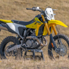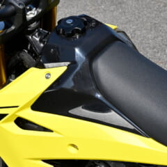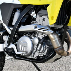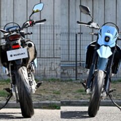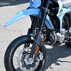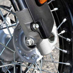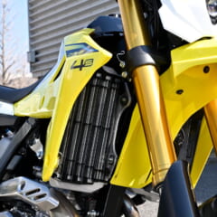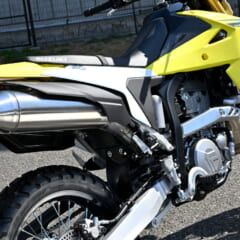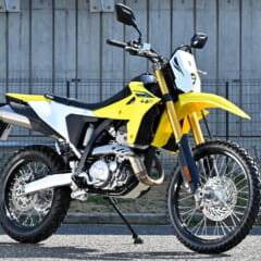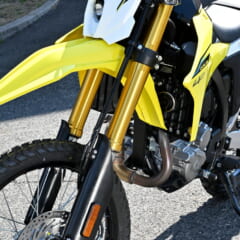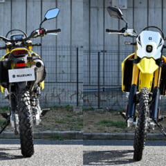 前後ホイールサイズだけでなく、前後ホイールトラベルもDR-Z4SMのほうがややショート化されている。