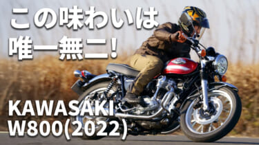 カワサキW800(2022) 試乗レビュー カワサキW800(2022) 概要 ■全長2190 全高1075 軸距1465 シート高790(各mm) 車重226kg ■水冷4スト2気筒SOHC4バルブ[…]