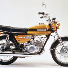 GT250[1971]GT500、GT350とともにTシリーズから刷新されて登場。54×54mmのスクエア設定247ccは継承しながら大幅なパワーアップを果たした2ストローク並列2気筒エンジン、クロスレシオの6速ギヤなどを採用していた。当時価格19万7000円。