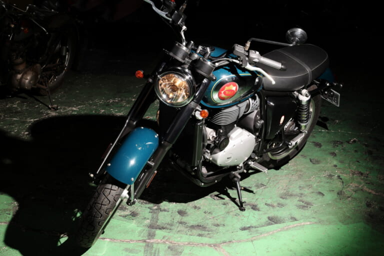 跨ってみたサイズ感は、ホンダGB350とカワサキW800の中間といったところ。装備重量は213kgあるが、シート高780mmで足着きには安心感があり、それほど重い感じはしない。取り回しでは数値通りの重量感があった。ライディングポジションは旧車の雰囲気に準じたアップライトなもので、タンクへの膝の当たりも自然だ。