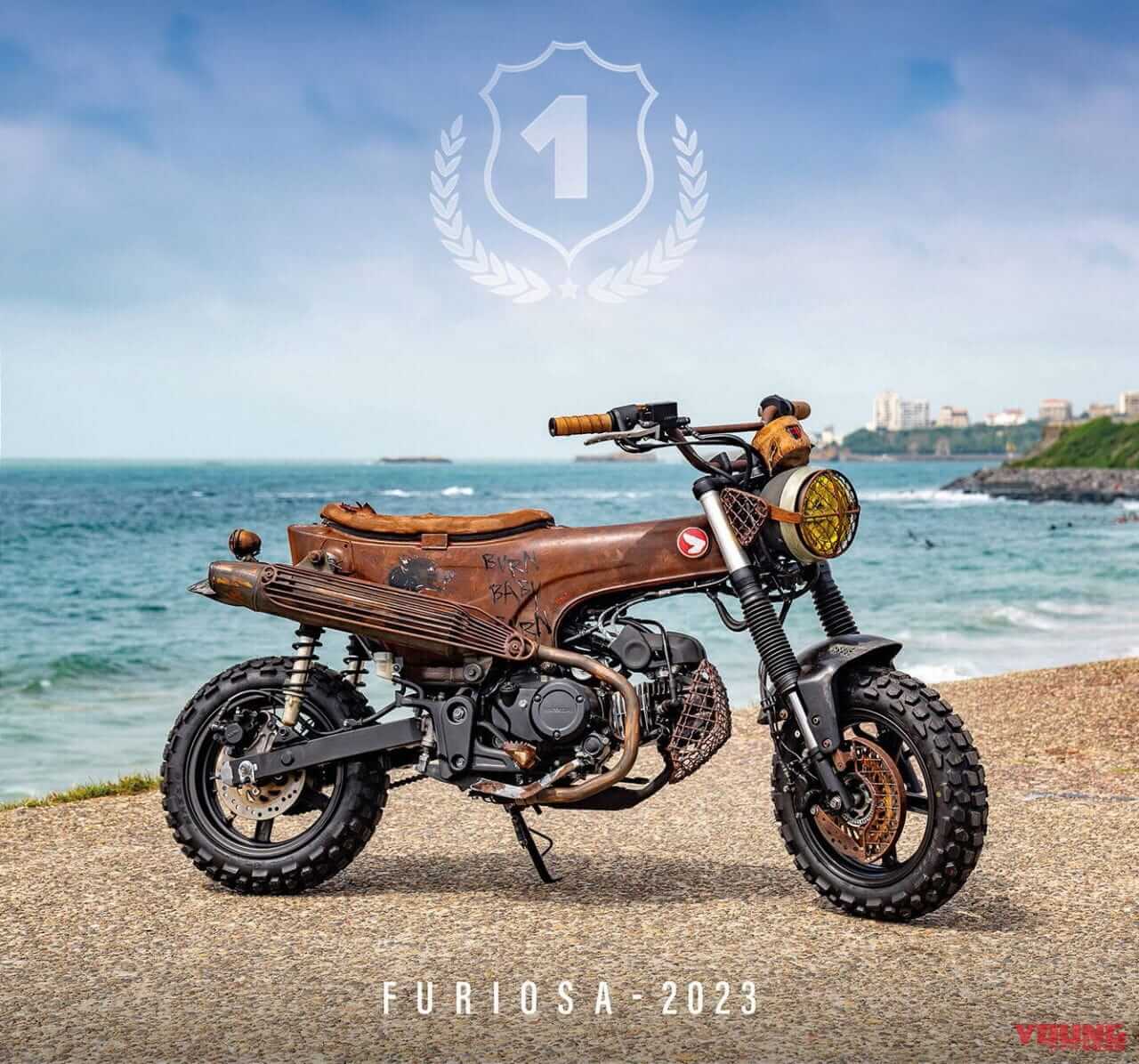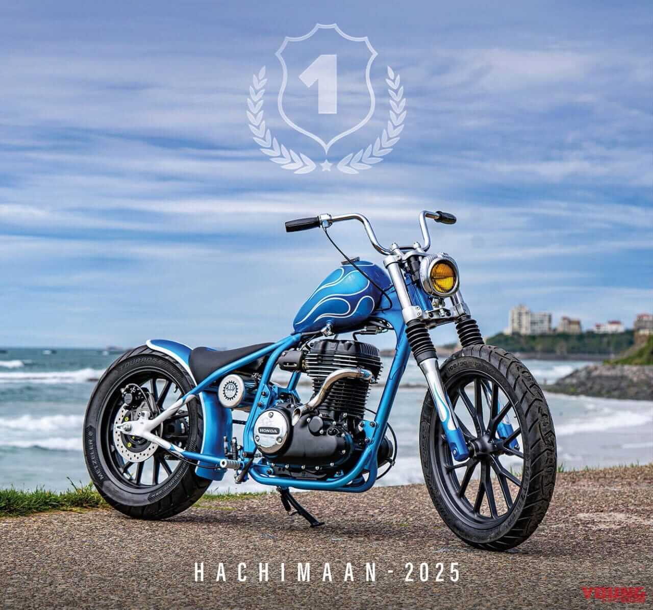 2021年に「スーパーカブ125X」で話題を呼び、ホンダカスタムズコンペティションにおいては2022年の覇者であるMAAN Motocicli Audaciが再び栄冠を手にした。GB350Sを最も過激に再解釈した1台で、ジャパニーズボバースタイルとした青いバイクには総投票数の31%にあたる9500票が集まった。日本の神道の戦いの神「八幡」の名を冠したマシンはシンプルな美しさを追求し、なんとハードテール化。ピーナッツタンクにスーサイドシフター(!)と、やりたい放題だ。なんでもいーのよ、カッコよければ……という精神が潔し。