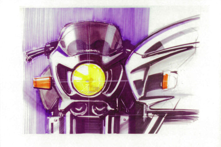 初代CB1000SFのアイデアスケッチ。