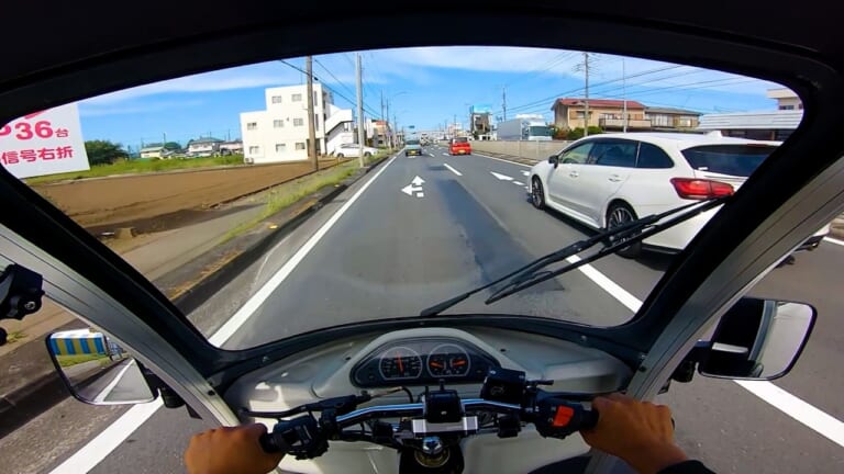 言い換えると、バイク乗りからすればとても馴染のあるフィーリングなのですが、車しか乗ったことない人が乗ったらちょっと驚くかもしれないですね。しかも車体は3輪トラックという特性上、急ハンドル切ったりすると片輪が浮いたり、そのまま転倒(!)するリスクがあります。250ccになってパワーが上がった分、加速もフィードもアップしているので、より一層ドライバーの慎重さが問われるわけです。