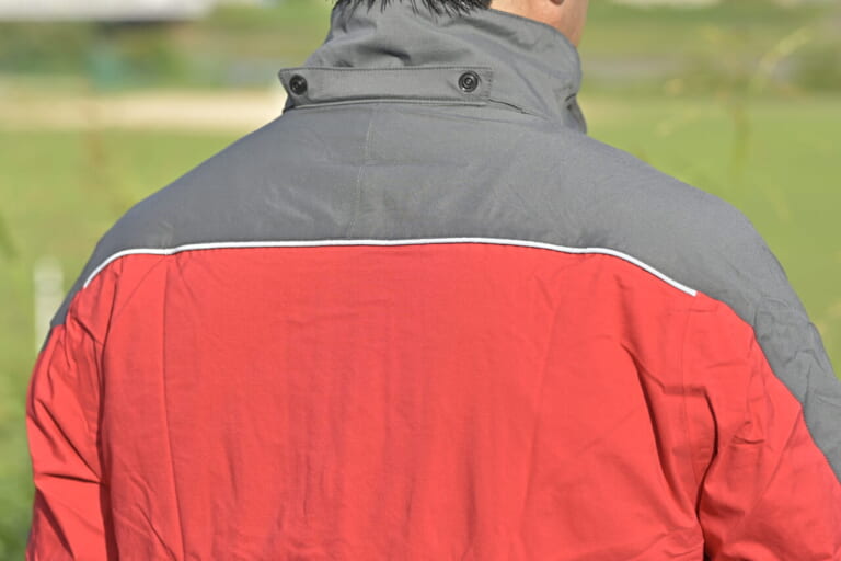 後ろ側。裾はラウンド構造を採用しており、丈もやや長めだ。