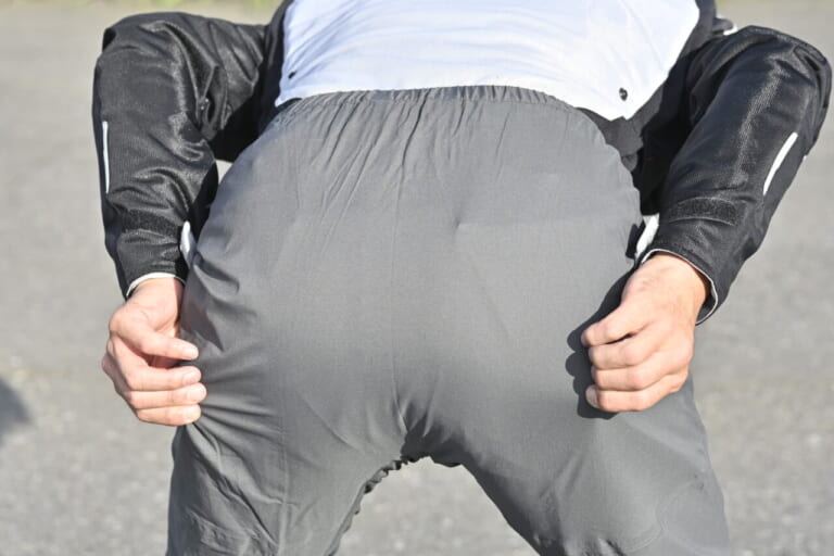 レインウエアの弱点になりやすい股部の縫い目を排した、シームレス構造を採用。