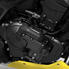 CB500SFのEクラッチユニットはまるで油圧クラッチのレリーズのような位置に収まっている。