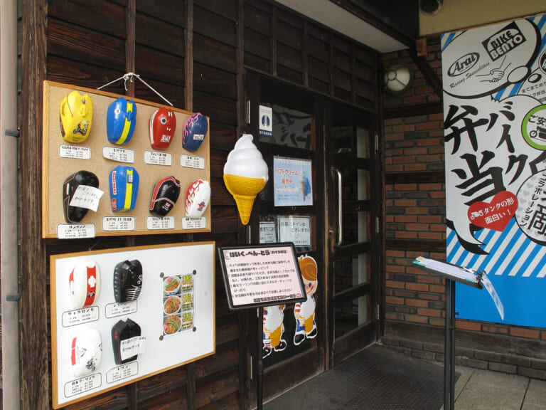 余談だが、小鹿神社と秩父神社を詣でるなら、自然豊かなツーリングルートの途上にある「バイク弁当の大滝食堂」も是非訪れたい。道の駅龍勢会館内で営業しており、オートバイのガソリンタンクを模した弁当箱に甘辛い豚唐揚げとご飯を詰め込んだ「バイク弁当」が人気だ。