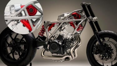 プロアームはかつてのVFRを思わせるが……? ホンダが全く新しい内燃機関のコンセプトモデルとして世界初公開したのは、『new ICE concept』と名付けられたV3エンジンだった。電動過給機付きと[…]